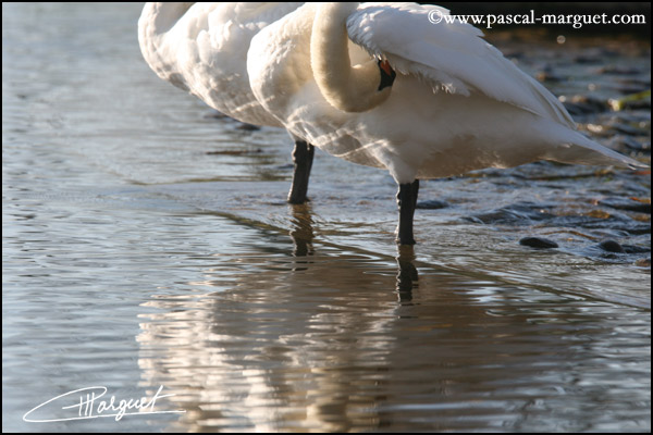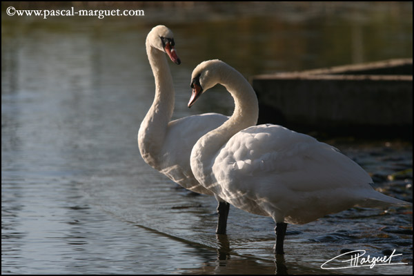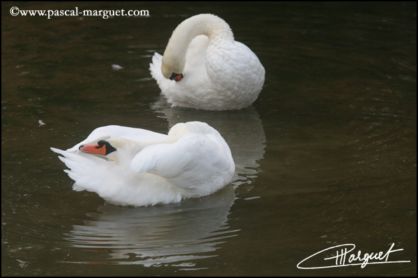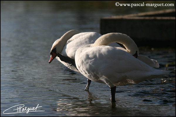 Couple de Cygne tuberculé à sa toilette