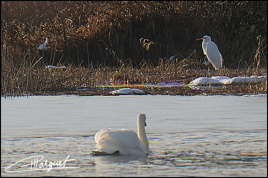 Cygne tuberculé et Grande Aigrette