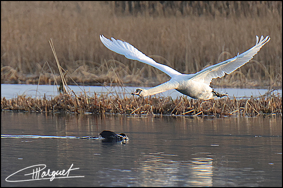 Envol d'un Cygne tuberculé