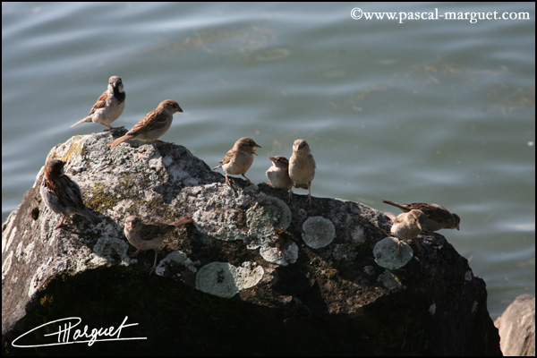 Troupe de Moineau domestique sur un rocher